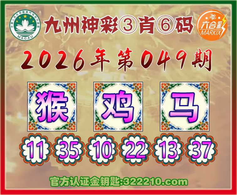049期:《九州神彩》 🌲③肖⑥码🌲【猴鸡】开:马13