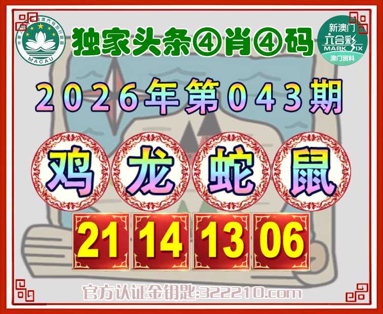 043期: 👉『独家头条』 👉④肖④码👉【鸡龙鼠】【21.14.13.06】开:蛇13