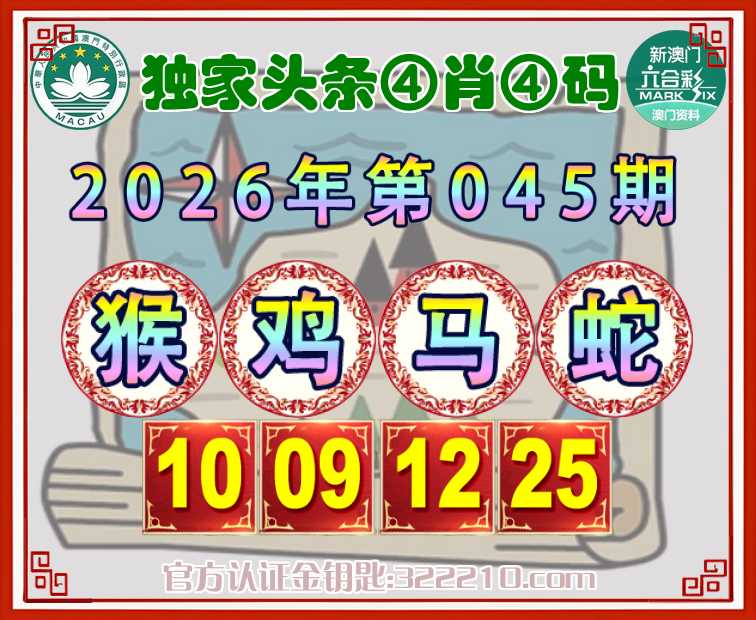 045期: 👉『独家头条』 👉④肖④码👉【猴鸡马】【10.09.12.25】开:蛇01