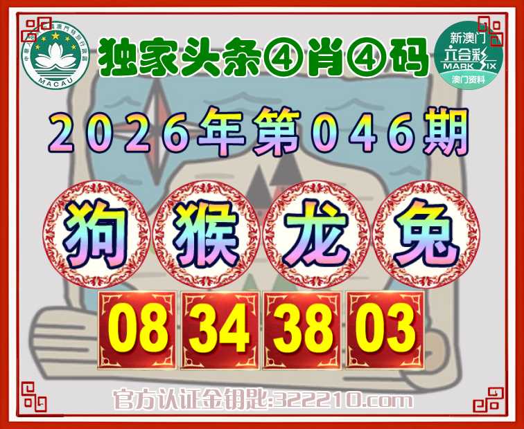 046期: 👉『独家头条』 👉④肖④码👉【狗猴龙】【08.34.38.03】开:兔03