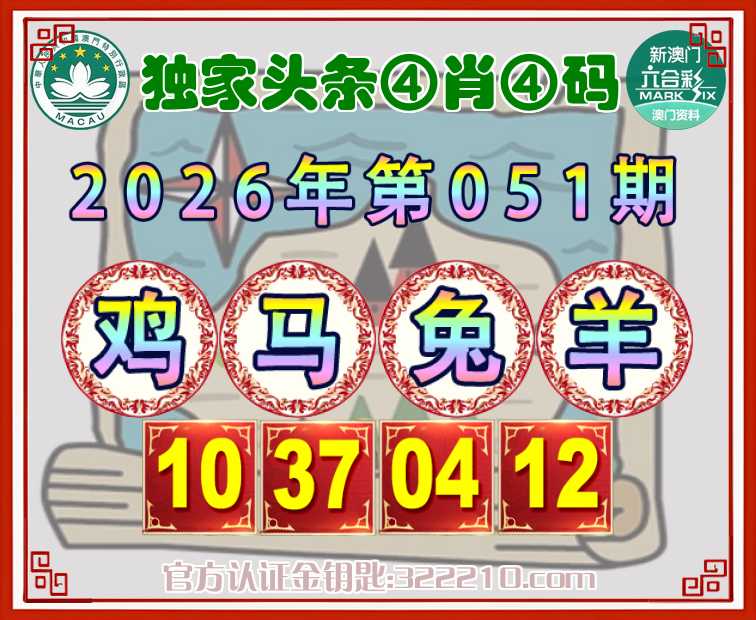 051期: 👉『独家头条』 👉④肖④码👉【鸡兔羊】【10.37.04.12】开:马01