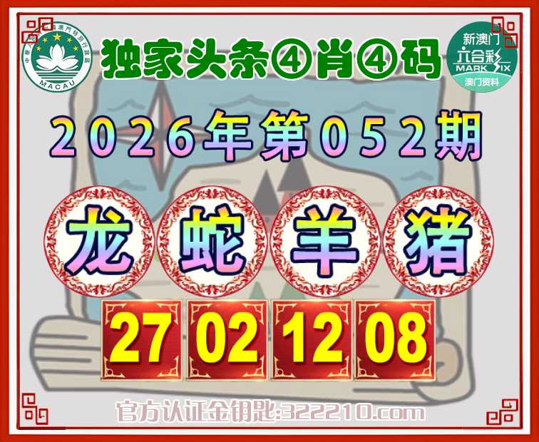 052期: 👉『独家头条』 👉④肖④码👉【龙羊猪】【27.02.12.08】开:蛇38