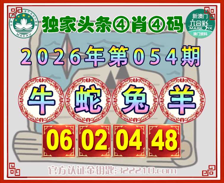 054期: 👉『独家头条』 👉④肖④码👉【牛蛇兔】【06.02.04.48】开:羊48