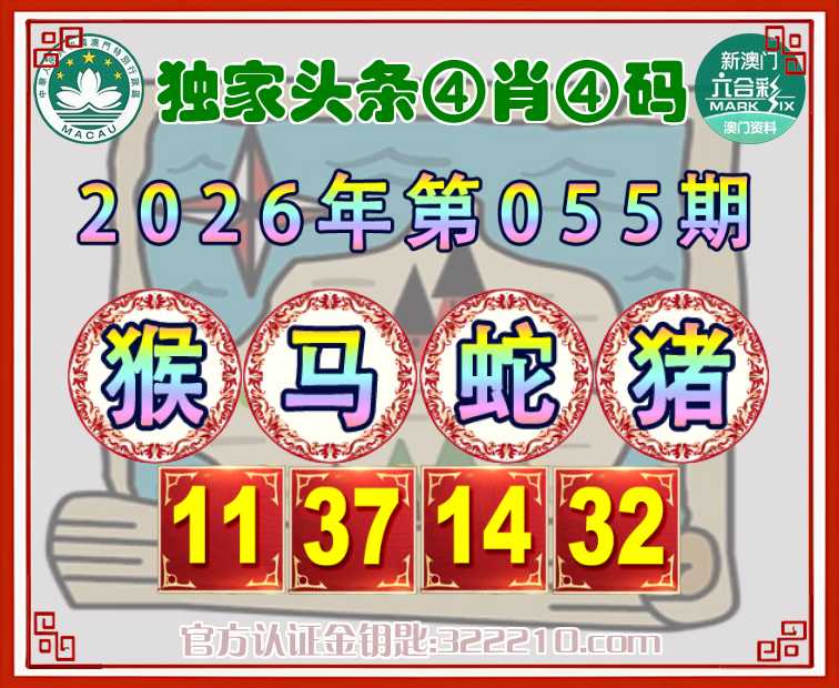 055期: 👉『独家头条』 👉④肖④码👉【猴马猪】【11.37.14.32】开:蛇14