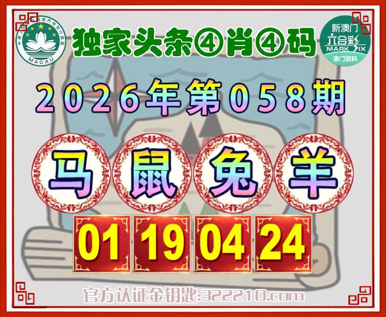 058期: 👉『独家头条』 👉④肖④码👉【马兔羊】【01.19.04.24】开:鼠31