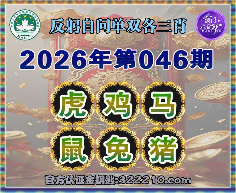 046期: 👚《反躬自问》 👚单双各三肖👚【虎.鸡.马.鼠..猪】开:兔03