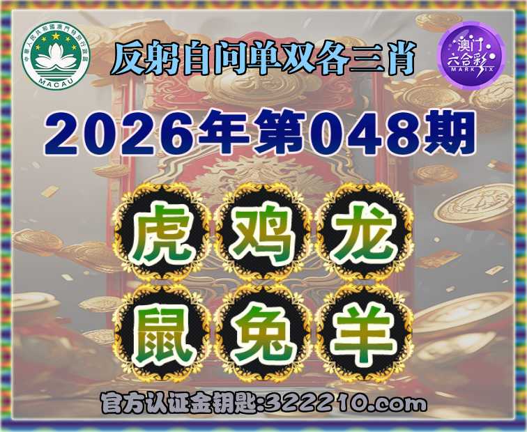 048期: 👚《反躬自问》 👚单双各三肖👚【虎.鸡.龙.鼠.兔.】开:羊24
