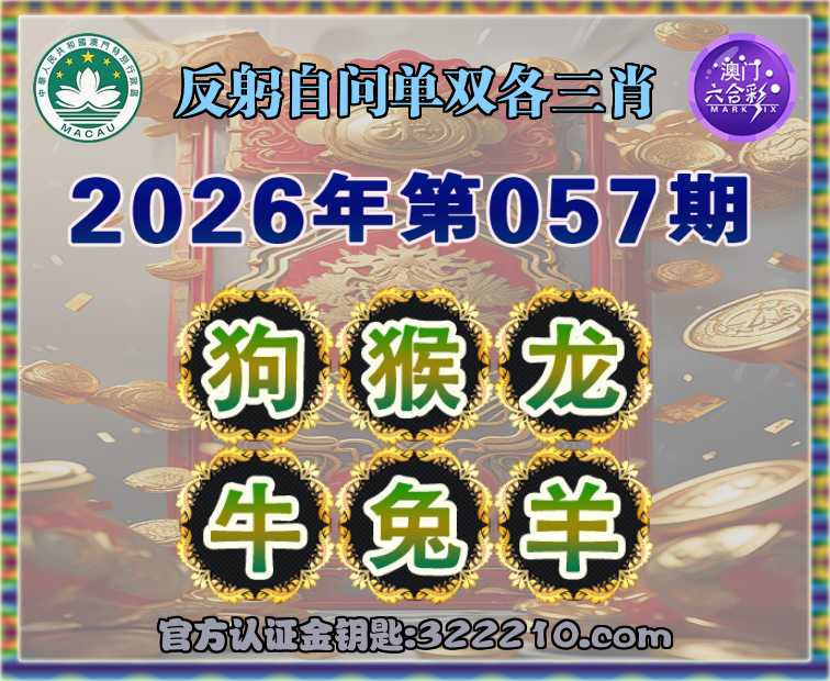 057期: 👚《反躬自问》 👚单双各三肖👚【狗..龙.牛.兔.羊】开:猴23