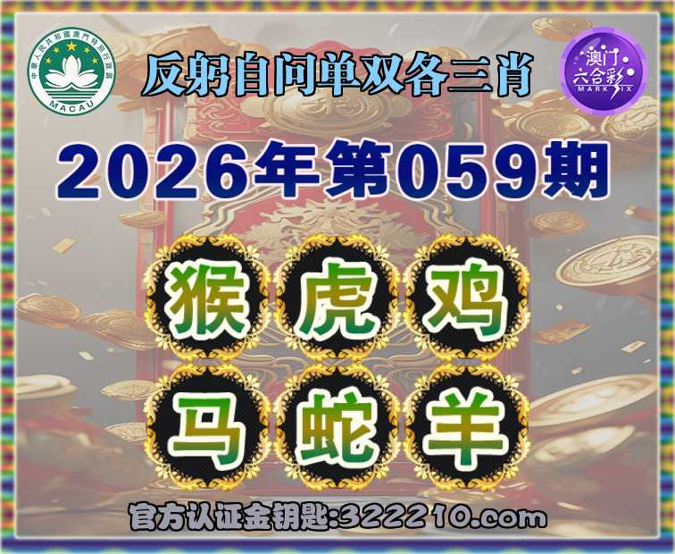 059期: 👚《反躬自问》 👚单双各三肖👚【猴.虎..马.蛇.羊】开:鸡10