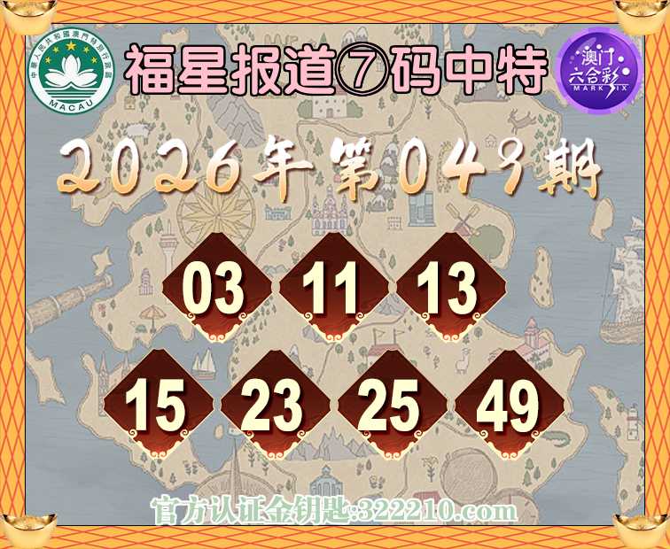 049期:【福星报道】 🥫⑦码中特🥫【03.11.13.15.23.25.49】开:13