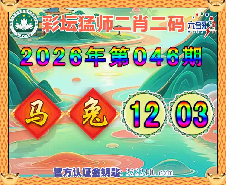 046期:《彩坛猛师》 🌷二肖二码🌷【马】【12.03】开:兔03