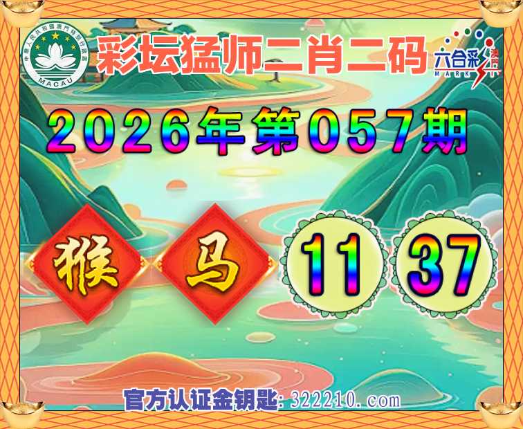 057期:《彩坛猛师》 🌷二肖二码🌷【马】【11.37】开:猴23