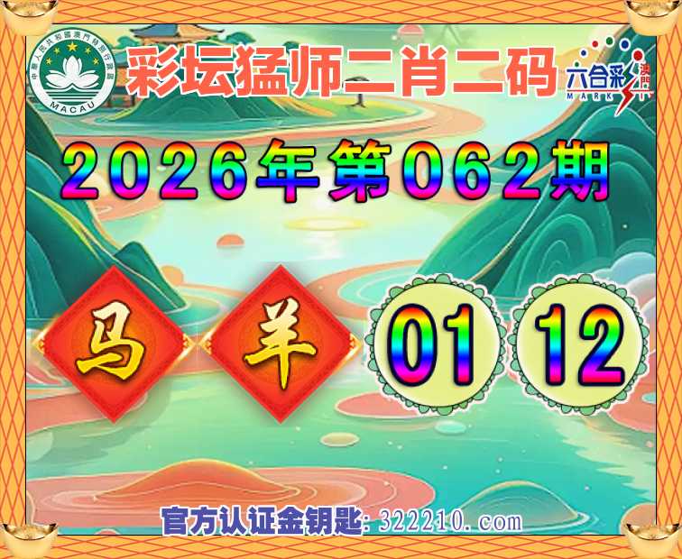 062期:《彩坛猛师》 🌷二肖二码🌷【马】【01.12】开:羊24