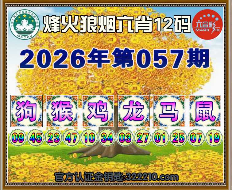 057期:【烽火狼烟】 📙六肖12码📙【狗鸡龙马鼠】开:猴23