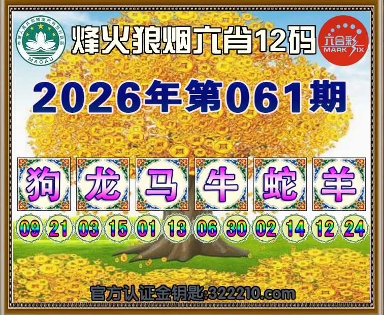 主题: 065期:金钥匙高手【烽火狼烟🔥六肖12码】正版澳彩