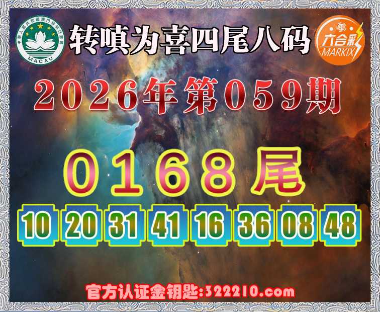 059期:【转嗔为喜】 👈四尾八码👈【0168尾】开:10