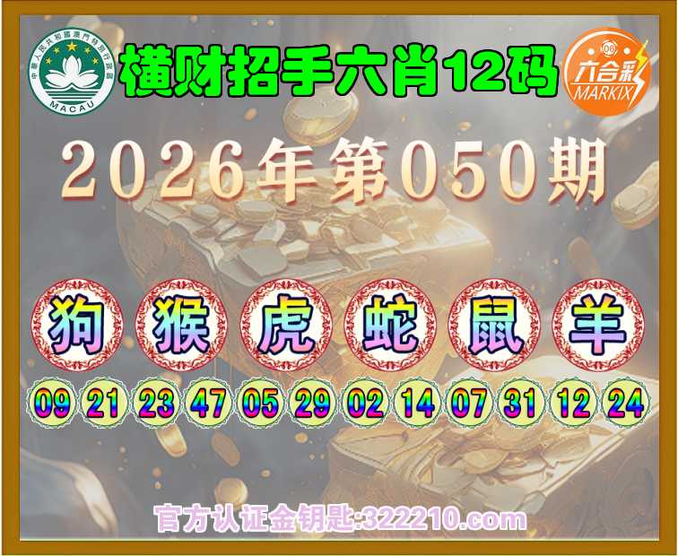 主题: 067期:金钥匙高手【横财招手🔥六肖12码】正版澳彩