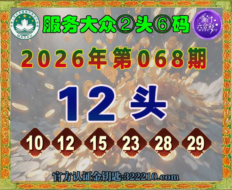 068期: ☝️『服务大众』 ☝️②头⑥码☝️【12头】开:猴23