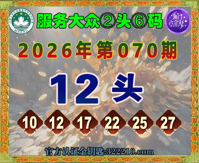 070期: ☝️『服务大众』 ☝️②头⑥码☝️【12头】开:马25