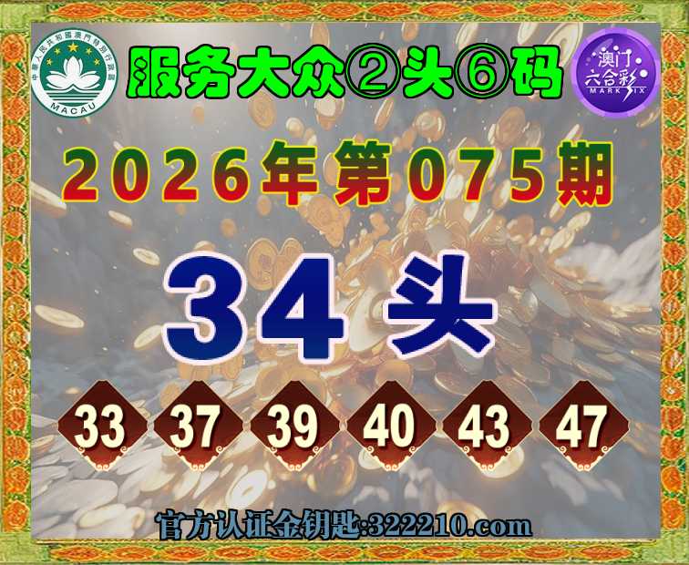075期: ☝️『服务大众』 ☝️②头⑥码☝️【34头】开:狗33