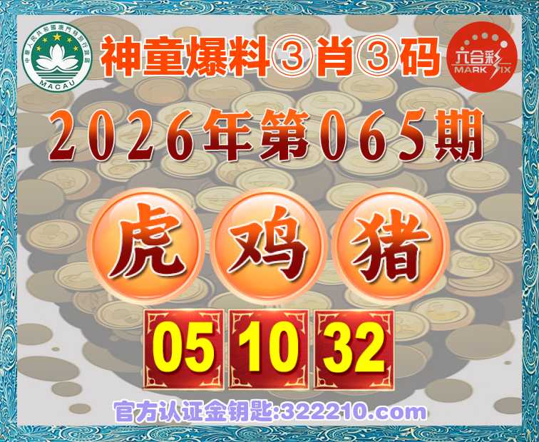 065期:『神童爆料』 ♣️③肖③码♣️【鸡猪】【05.10.32】开:虎05