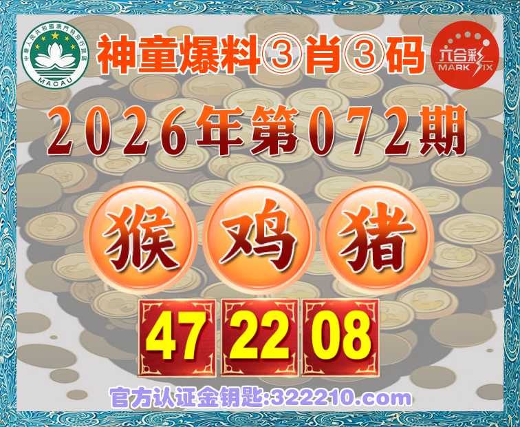 072期:『神童爆料』 ♣️③肖③码♣️【猴猪】【47.22.08】开:鸡46