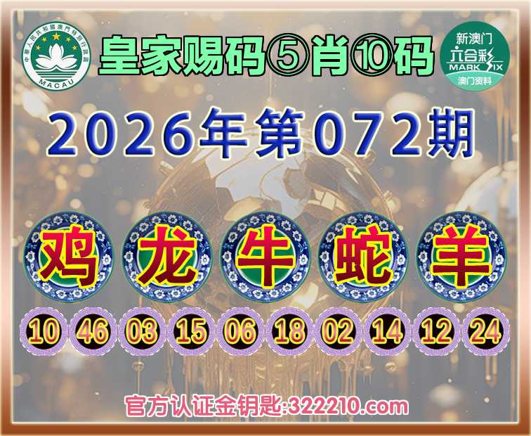 072期:《皇家赐码》 🌷⑤肖⑩码🌷【龙牛蛇羊】开:鸡46