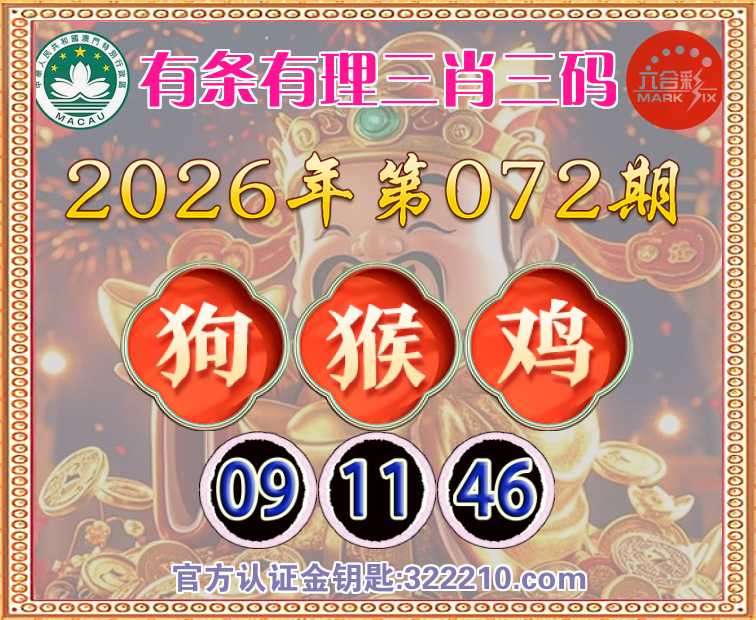 072期:『有条有理』 ✌️三肖三码✌️【狗猴】【09.11.46】开:鸡46