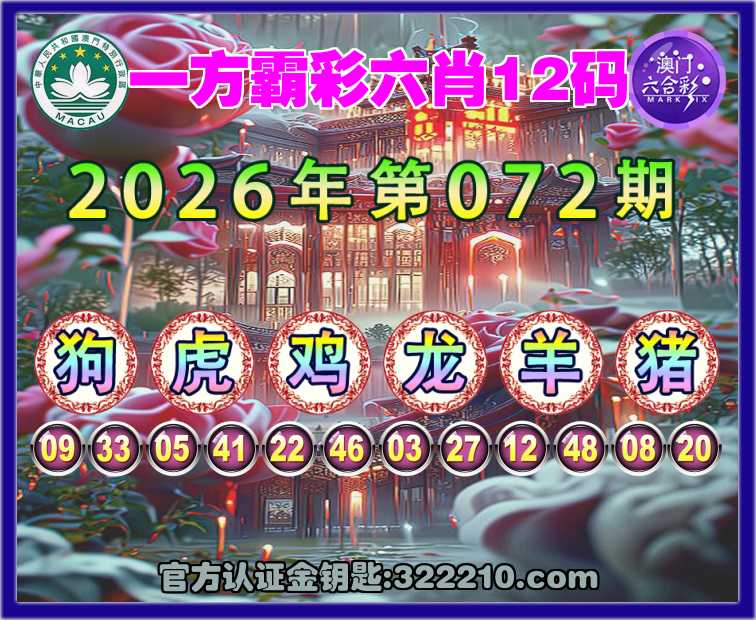 072期:〖一方霸彩〗 🕯六肖12码🕯【狗虎龙羊猪】开:鸡46