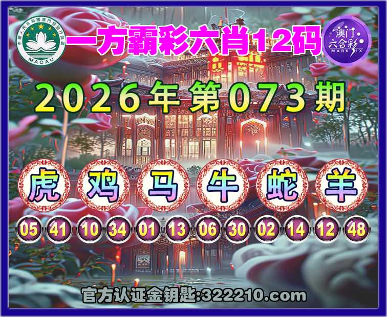 073期:〖一方霸彩〗 🕯六肖12码🕯【虎马牛蛇羊】开:鸡34