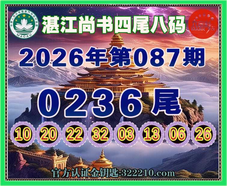 087期: ♠️『湛江尚书』 ♠️四尾八码♠️【0236尾】开:26