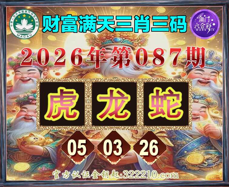 087期:《财富满天》 🀄三肖三码🀄【虎龙】【05.03.26】开:蛇26