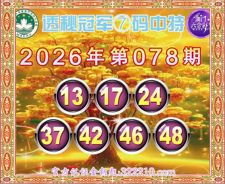 078期:〖透秘冠军〗 🥫⑦码中特🥫【13.17.24.37.42.46.48】开:46