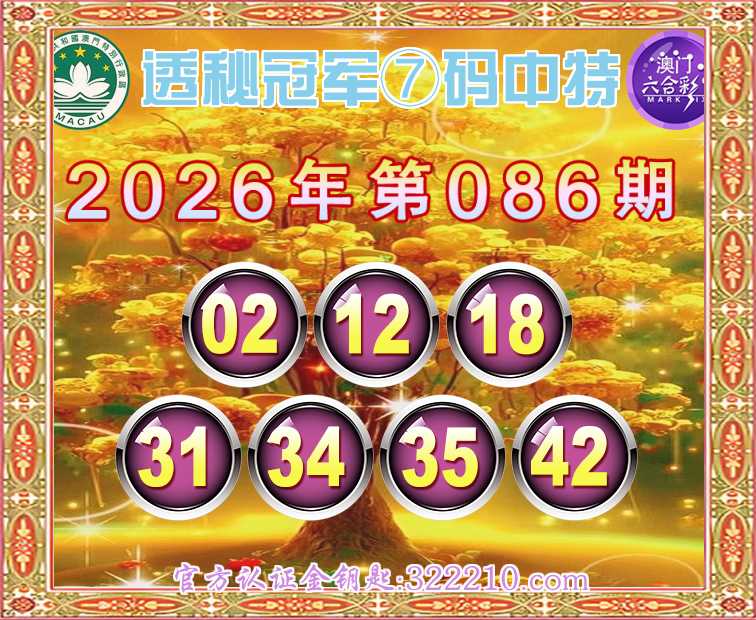 086期:〖透秘冠军〗 🥫⑦码中特🥫【02.12.18.31.34.35.42】开:12