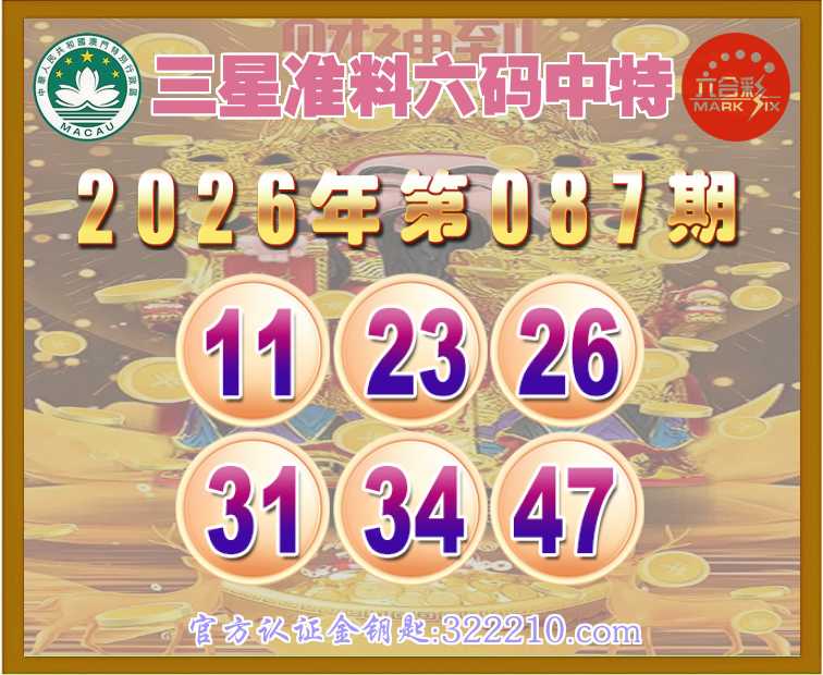 087期:『三星准料』 🥓六码中特🥓【11.23.26.31.34.47】开:26