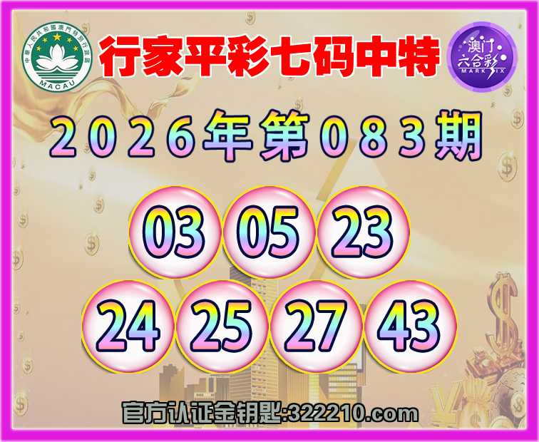 083期:【行家平彩】 ☺️七码中特☺️【03.05.23.24.25.27.43】开:05