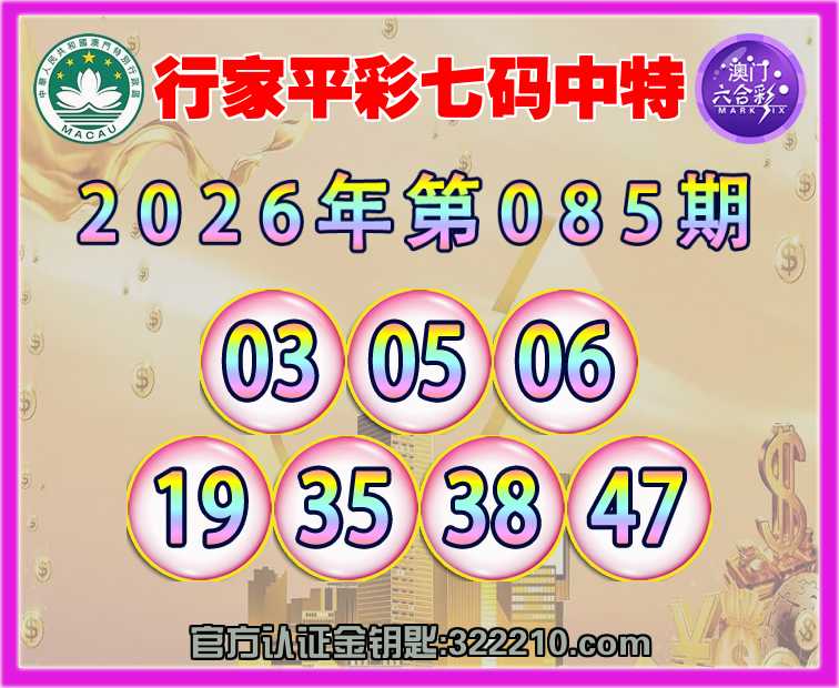 085期:【行家平彩】 ☺️七码中特☺️【03.05.06.19.35.38.47】开:19