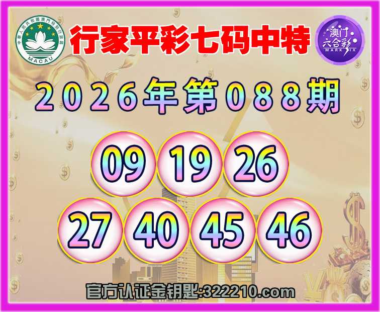 088期:【行家平彩】 ☺️七码中特☺️【09.19.26.27.40.45.46】开:27