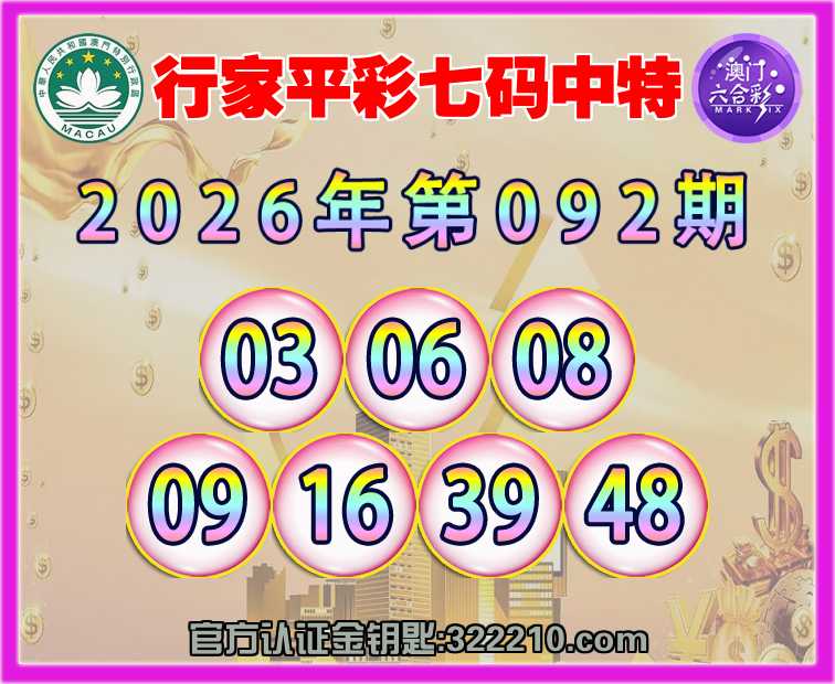 092期:【行家平彩】 ☺️七码中特☺️【03.06.08.09.16.39.48】开:06