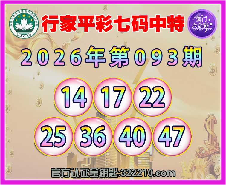 093期:【行家平彩】 ☺️七码中特☺️【14.17.22.25.36.40.47】开:40
