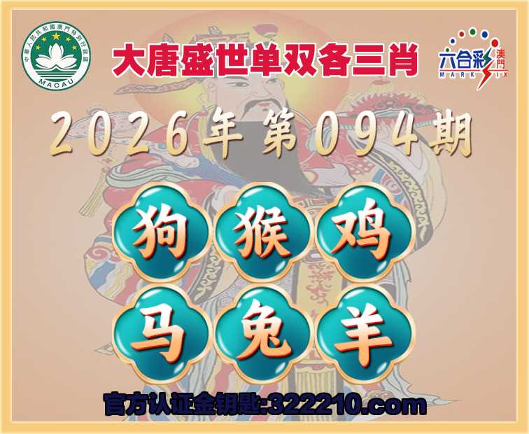 094期:【大唐盛世】 🥓单双各三肖🥓【狗.猴.鸡.马.兔.羊】开:00准