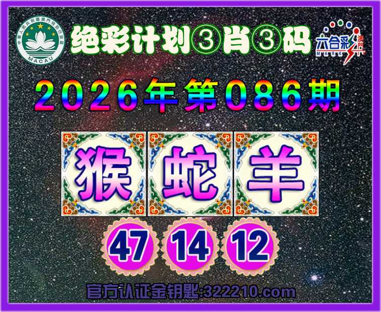 086期:【绝彩计划】 👩‍🌾③肖③码👩‍🌾【猴蛇】【47.14.12】开:羊12
