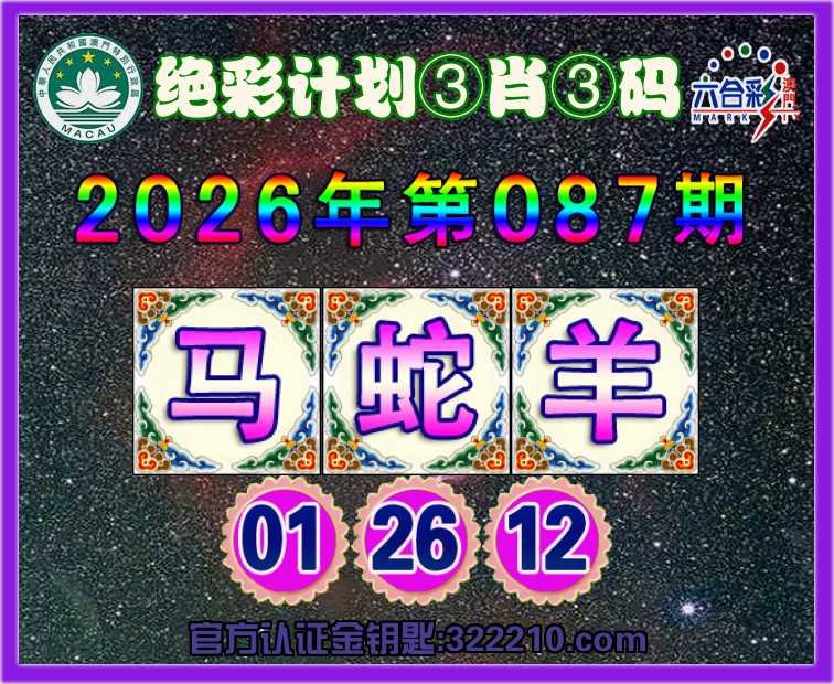 087期:【绝彩计划】 👩‍🌾③肖③码👩‍🌾【马羊】【01.26.12】开:蛇26