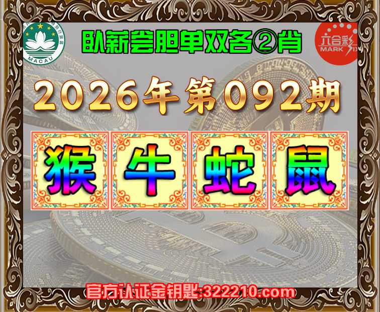 092期:『卧薪尝胆』 🧦单双各②肖🧦【猴..蛇.鼠】开:牛06