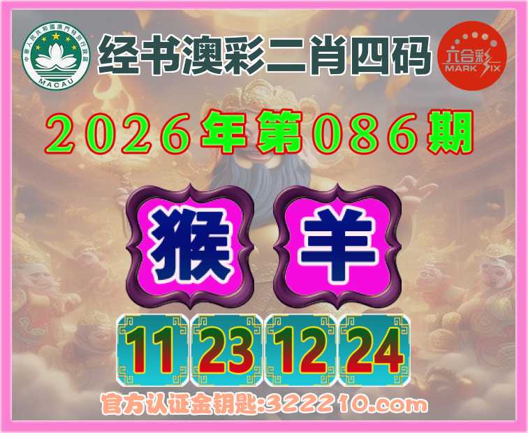 086期:《经书澳彩》 🏇二肖四码🏇【猴】【11.23.12.24】开:羊12