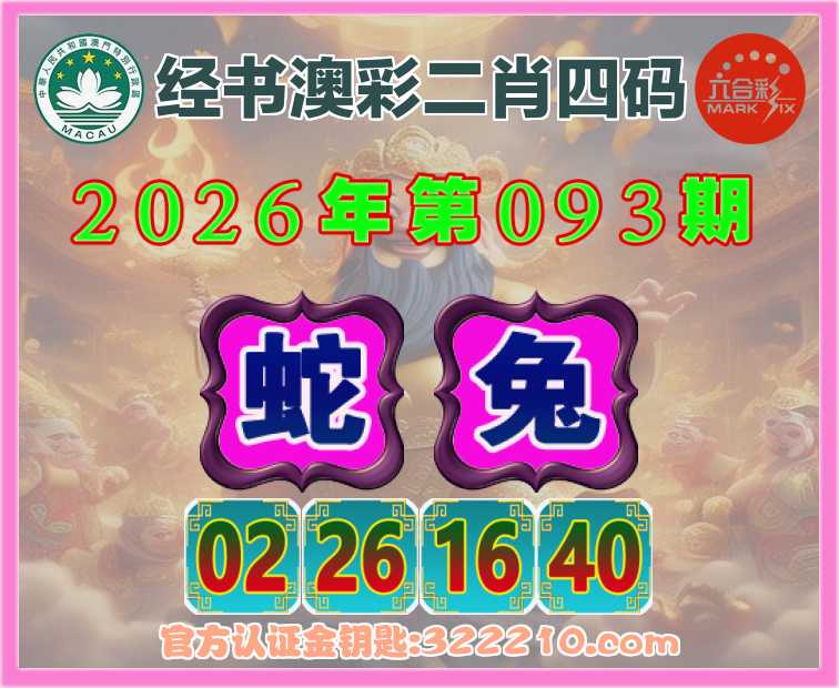 093期:《经书澳彩》 🏇二肖四码🏇【蛇】【02.26.16.40】开:兔40