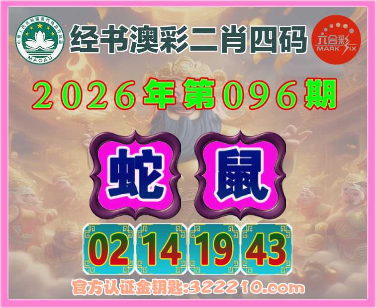096期:《经书澳彩》 🏇二肖四码🏇【蛇】【02.14.19.43】开:鼠43