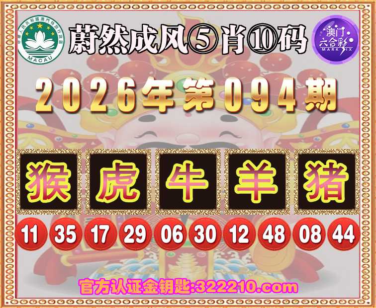 094期:【蔚然成风】 💎⑤肖⑩码💎【猴牛羊猪】开:虎17