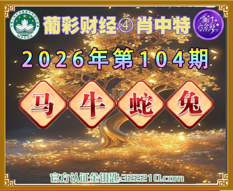 104期:《葡彩财经》 🐓④肖中特🐓【.牛.蛇.兔】开:马01
