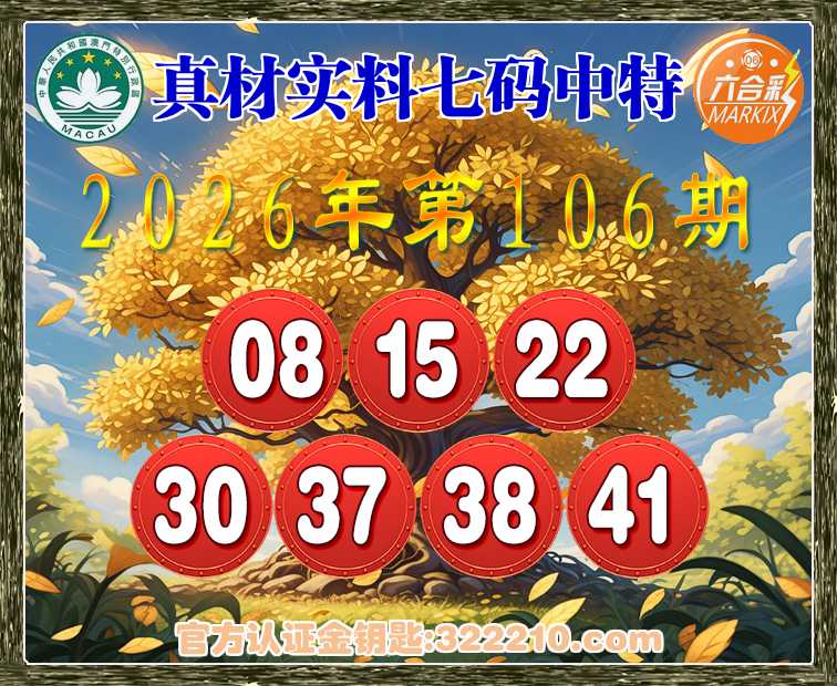 106期:《真材实料》 🍎七码中特🍎【08.15.22.30.37.38.41】开:00准
